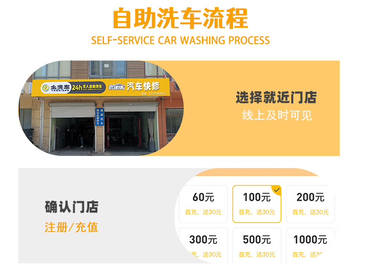 速云科技自助洗車系統(tǒng),通過線上軟件+智能硬件搭建24小時無人值守自助洗車空間,支持區(qū)域代理、用戶充值、線上優(yōu)惠券營銷、掃描開門/車牌識別開門、自動計時計費、自動鎖門等功能。