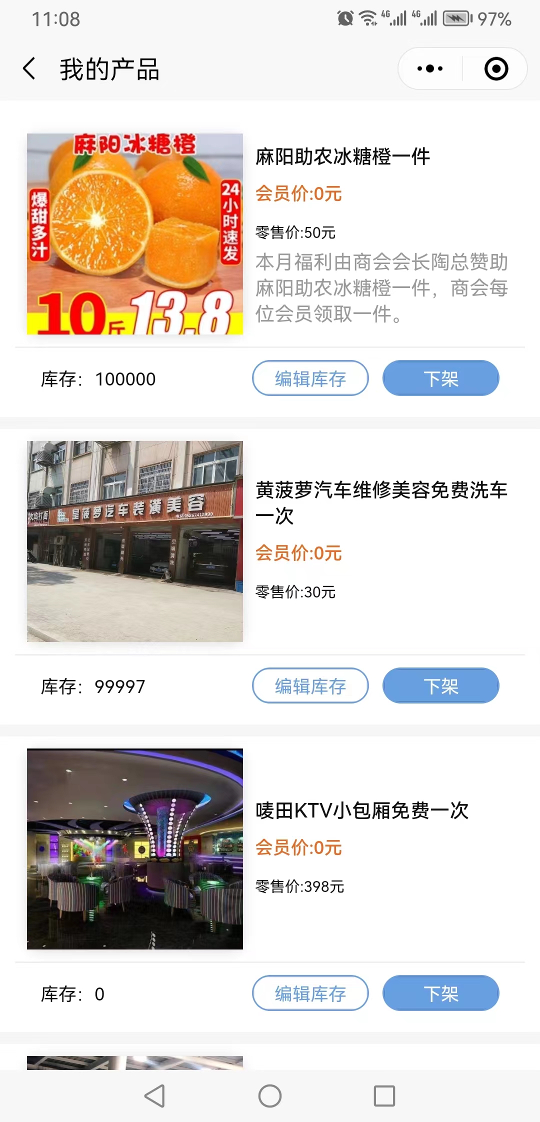 商會(huì)的積分福利商城合作商家可以在手機(jī)進(jìn)行產(chǎn)品上下架、訂單受理、對(duì)賬提現(xiàn)等操作。