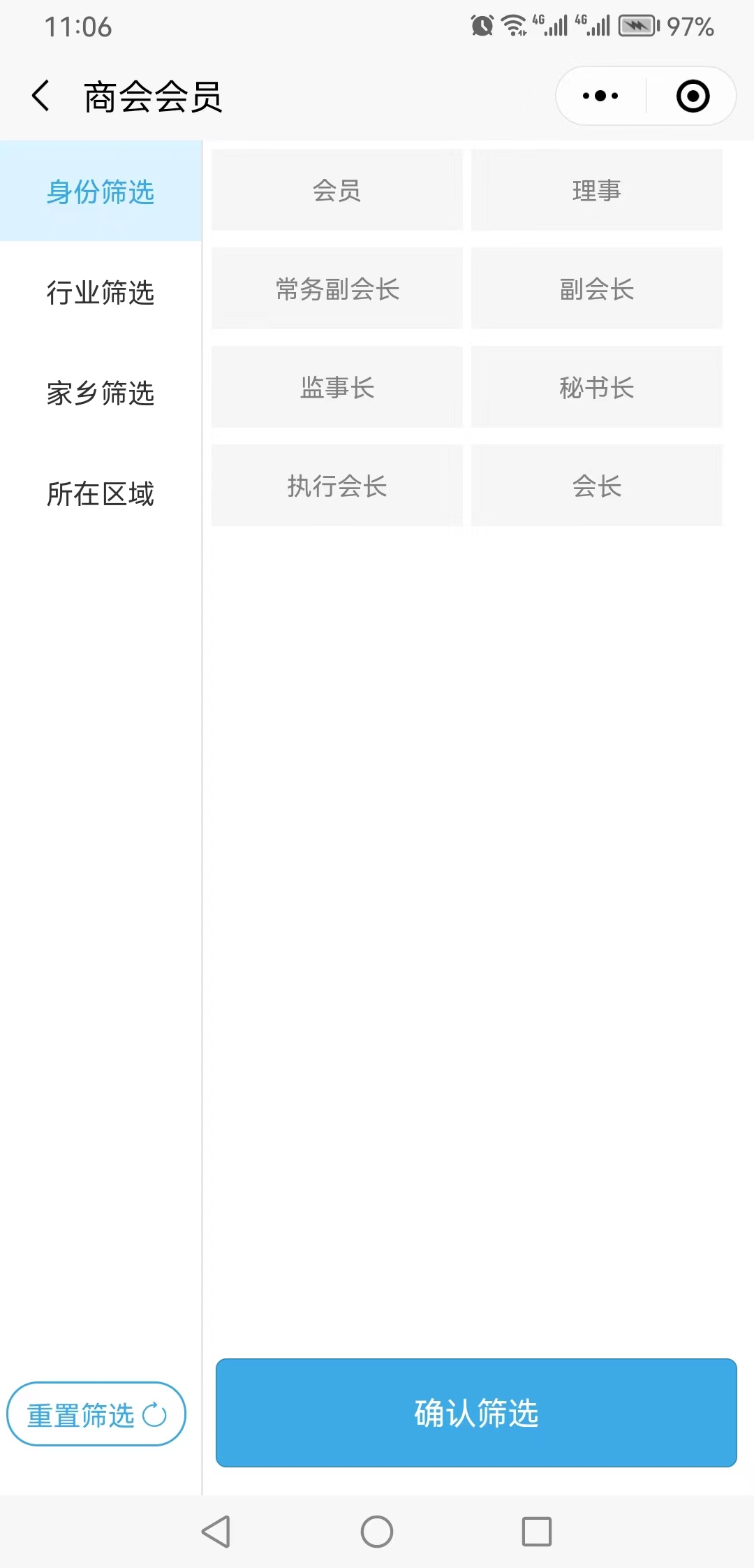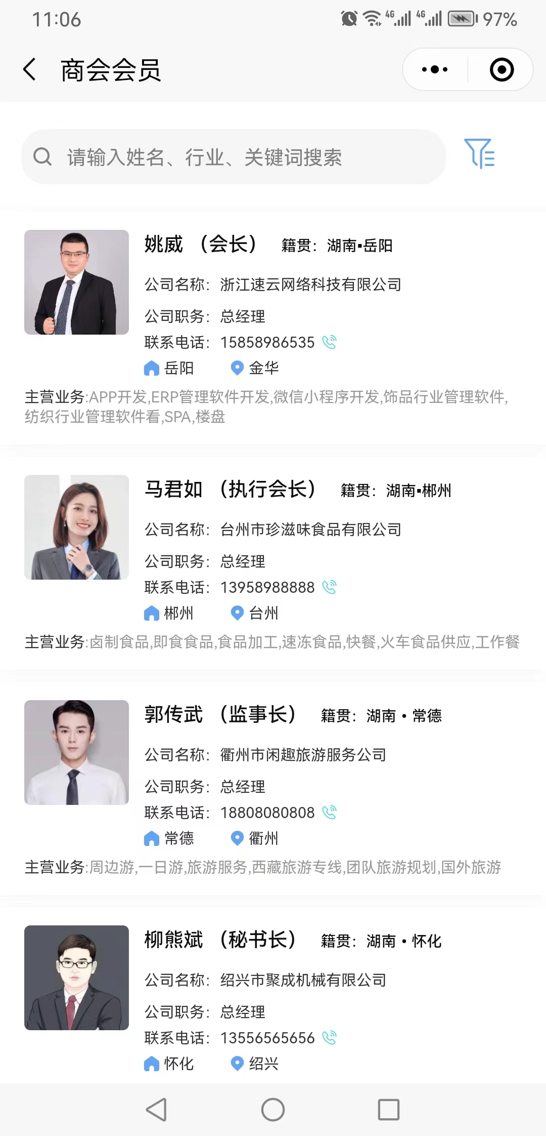 商協(xié)會(huì)內(nèi)部通訊錄僅對(duì)商會(huì)內(nèi)部成員開(kāi)放,外部成員不能進(jìn)入此頁(yè)面,可按姓名、行業(yè)、手機(jī)號(hào)等搜索內(nèi)部成員,也可以按會(huì)內(nèi)職務(wù)、家鄉(xiāng)、行業(yè)、所在區(qū)域等進(jìn)行篩選。