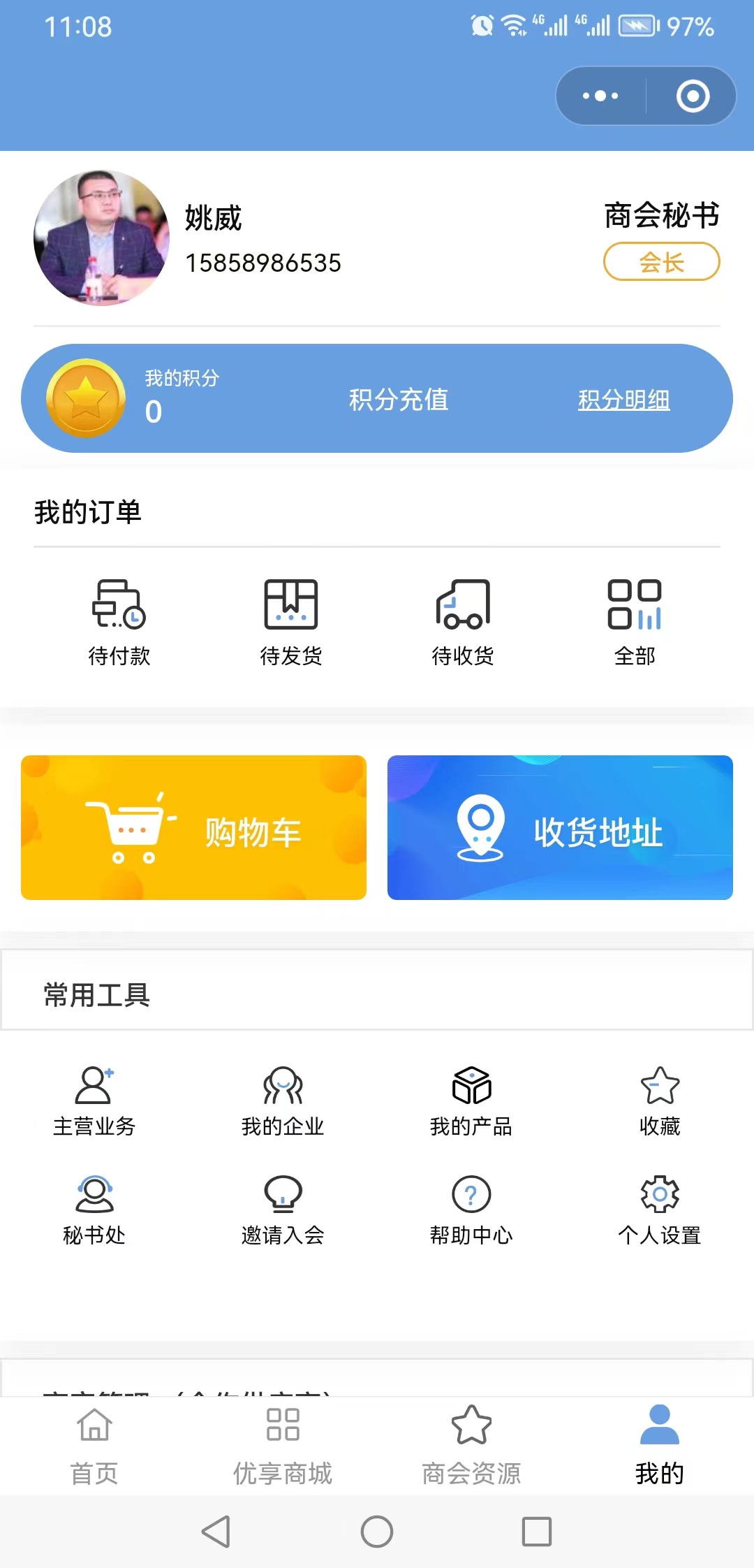 商會(huì)會(huì)員進(jìn)入個(gè)人中心可以查看自己的積分、訂單,還可以設(shè)置自己的搜索關(guān)鍵詞,方便其他會(huì)員查找,擁有更多的商業(yè)機(jī)會(huì)。