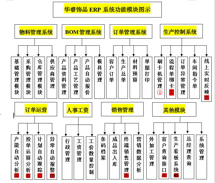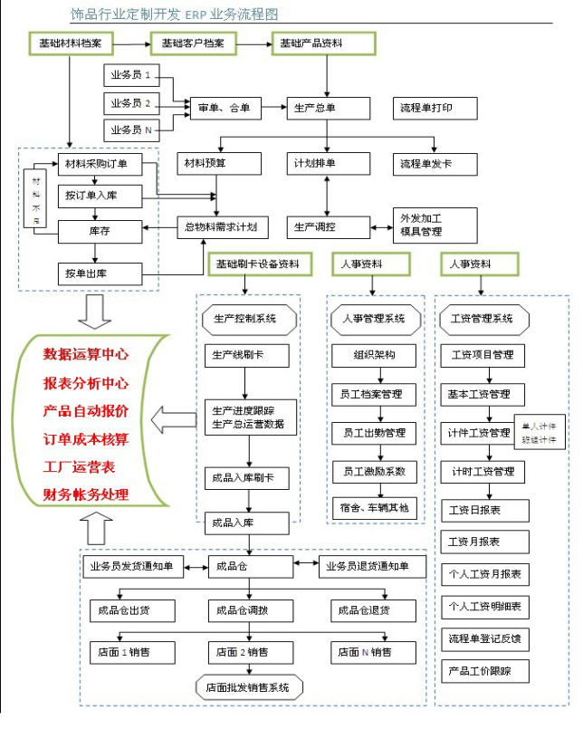 一、華睿飾品ERP業(yè)務(wù)流程及功能模塊圖示: