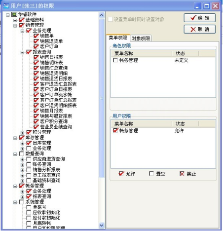 菜單與報(bào)表權(quán)限設(shè)置: