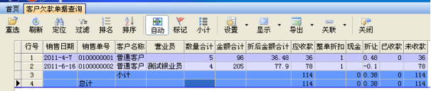 客戶欠款單據(jù)明細(xì)查詢: