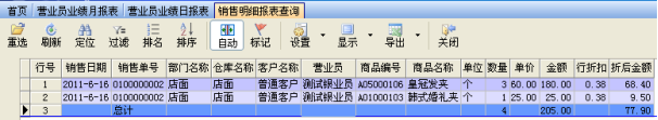 業(yè)務(wù)員銷售明細(xì)報(bào)表: