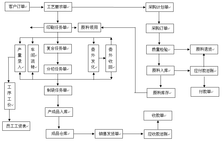 義烏印刷行業(yè)生產(chǎn)ERP管理軟件系統(tǒng)流程圖: