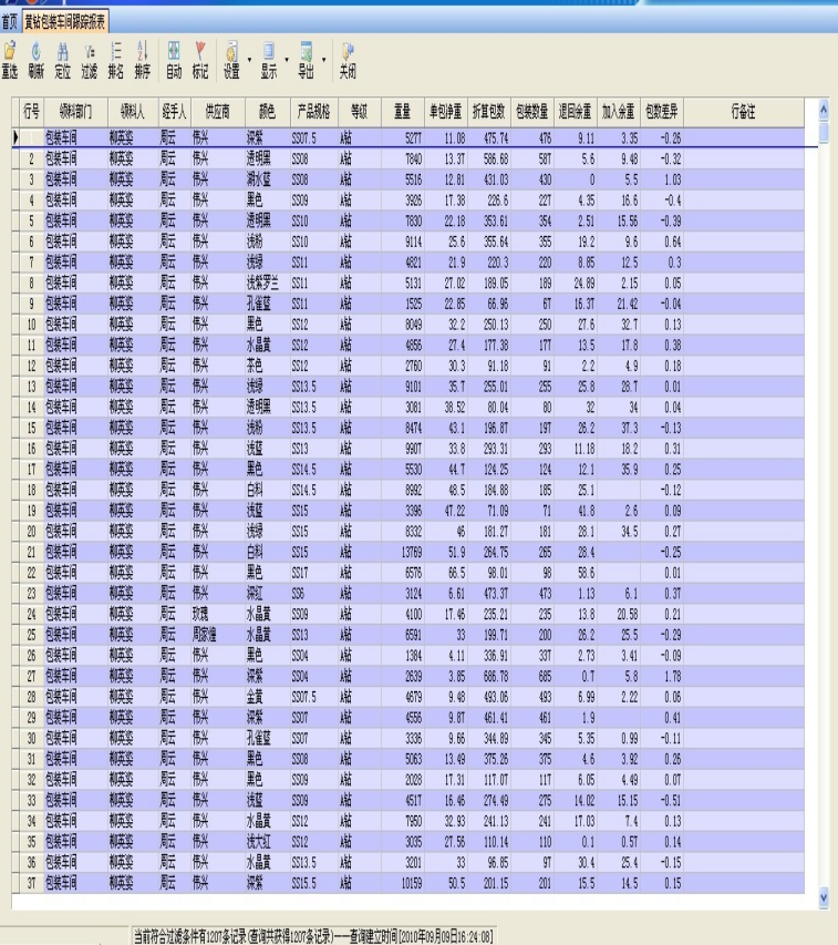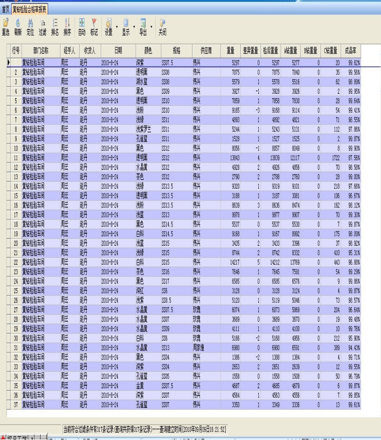 加強(qiáng)前道數(shù)據(jù)跟蹤,監(jiān)控從珠胚領(lǐng)料、磨鉆、洗鉆、品檢、分篩到半成品入庫(kù)全過(guò)程,讓每階段的數(shù)據(jù)進(jìn)行有效銜接;