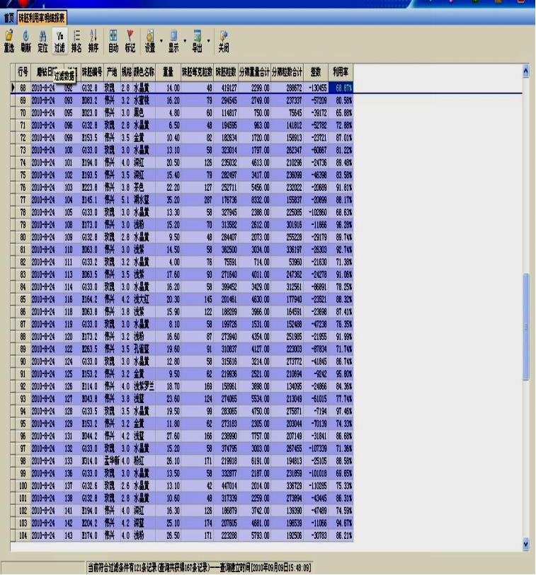 2、 加強(qiáng)后道數(shù)據(jù)跟蹤,計(jì)算每道工序的損耗和總損耗,用批次控制產(chǎn)品的品質(zhì)和色差;
