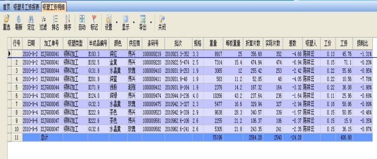 3、 通過(guò)每道工序的合格成品入庫(kù),完成車間工人工資核算,椐據(jù)每道工序的成品合格率,來(lái)完成工人績(jī)效考核;